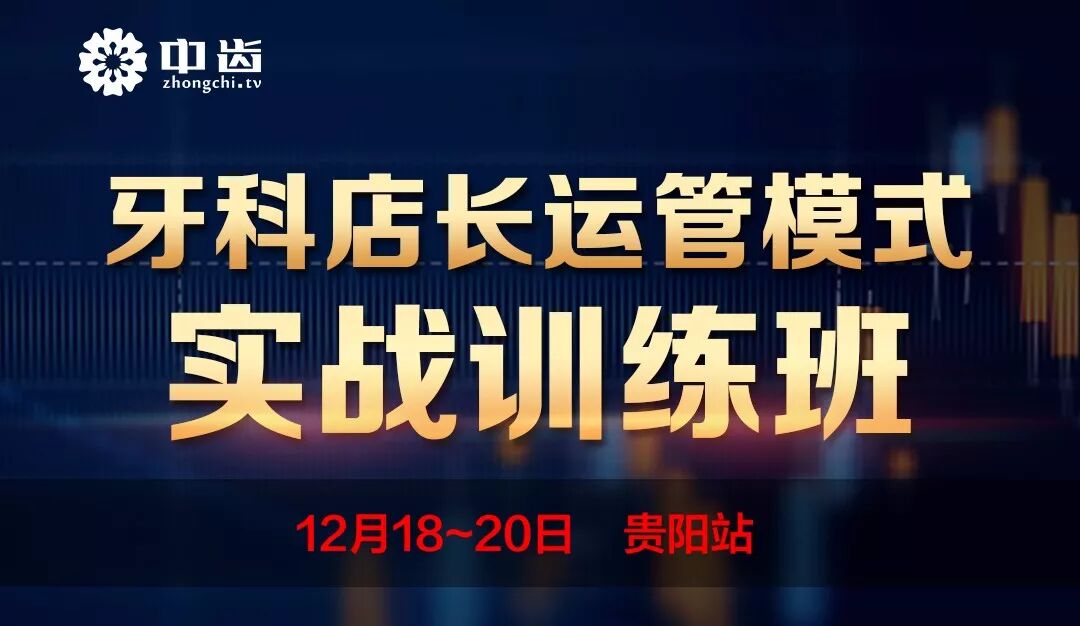 各位牙科朋友,欢迎您参加第20期《牙科店长运管模式实战训练班》,课程将于12月18日-20日贵阳市烈变大酒店如期举办,我们已准备好干货和福利,热情迎接您的到来!感谢您的信任与支持!